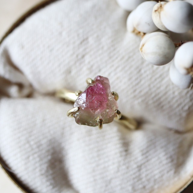 オーダー:原石ウォーターメロントルマリン・ルビーのイヤーカフ/リング
