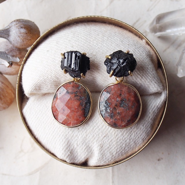 2way:原石のトルマリンとロードナイトのピアス