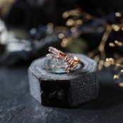 アクアマリンと柱状のクォーツ結晶が共生する、創造上の鉱物「Unionite」のイヤーカフ。