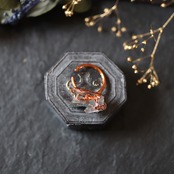 初めはピンクゴールドに似た色味ですが、空気中の酸素・水分・人間の汗や皮脂にって経年変化し、使い込んだアンティークのような質感に変化していきます。変化が気になる場合は、アクセサリー用の磨き布、金属磨き液などを使えば、輝きが蘇ります。経年変化も味わいながらお楽しみいただければ何よりです。