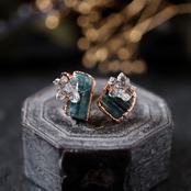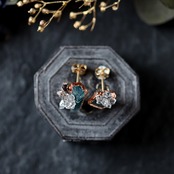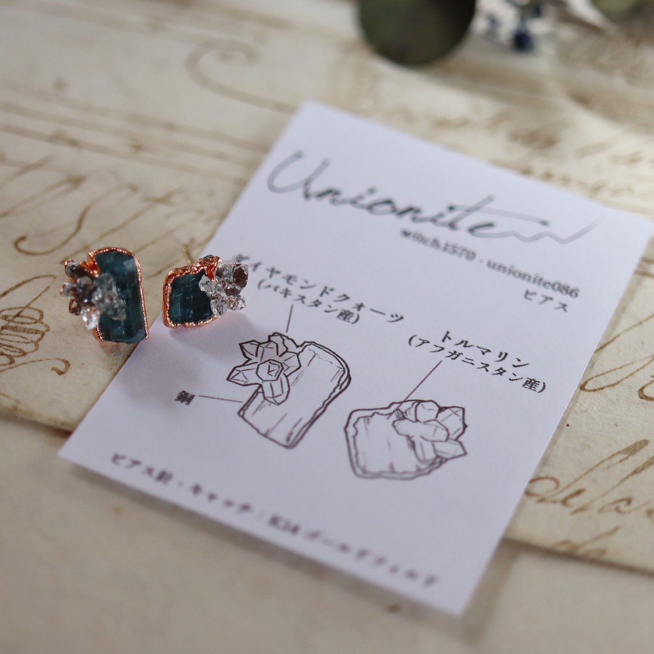トルマリンを母岩にダイヤモンドクォーツが結晶した、創造上の鉱物「Unionite」のピアス。