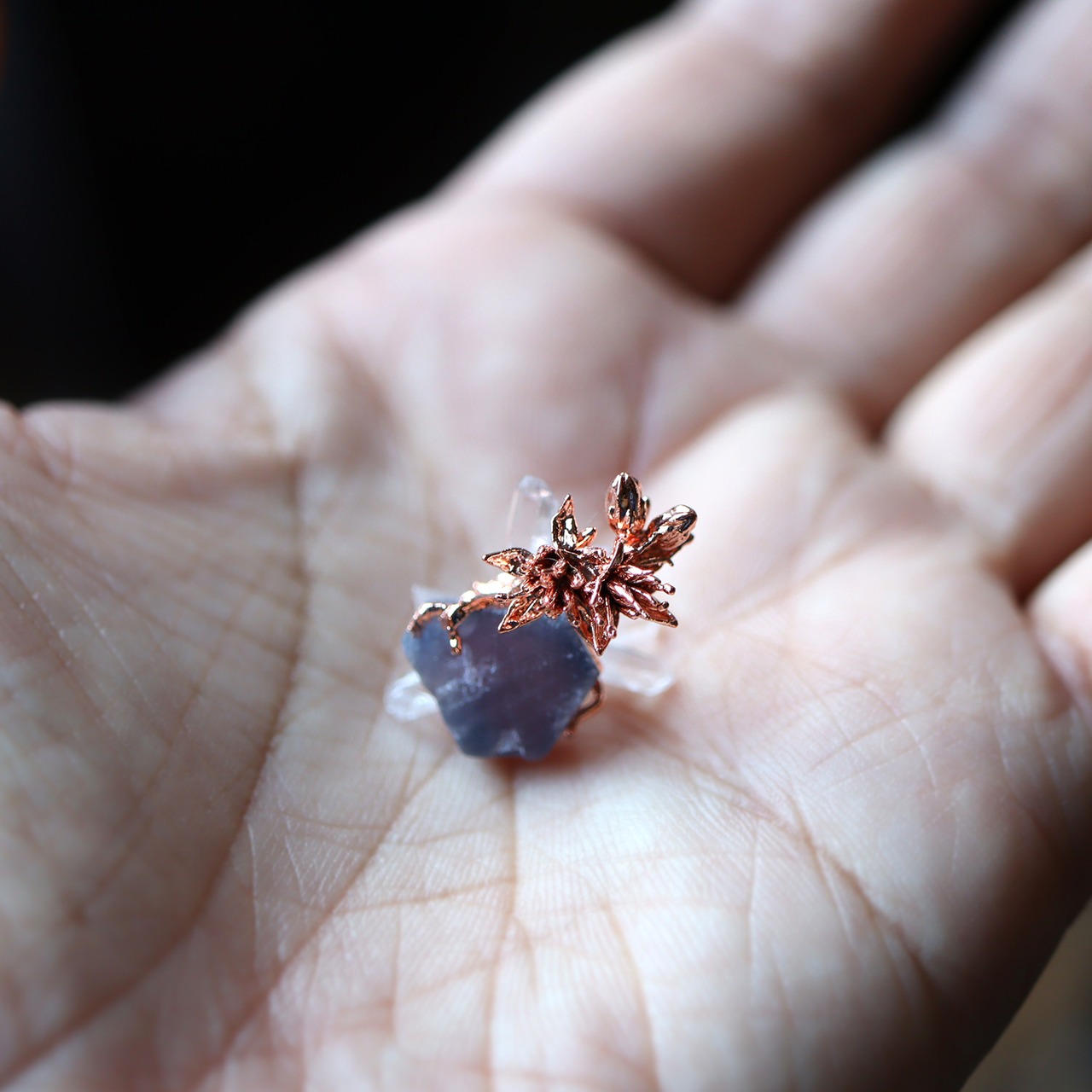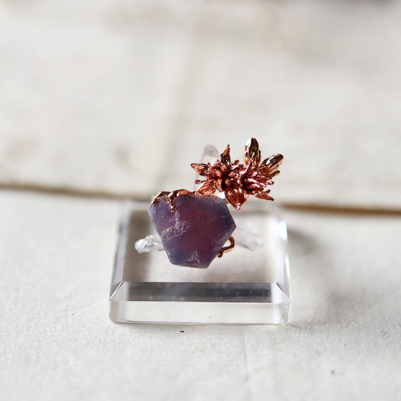 素材:サファイア(モザンビーク産)・クォーツ(マダガスカル産)・メキシコマンネングサ(銅メッキ)