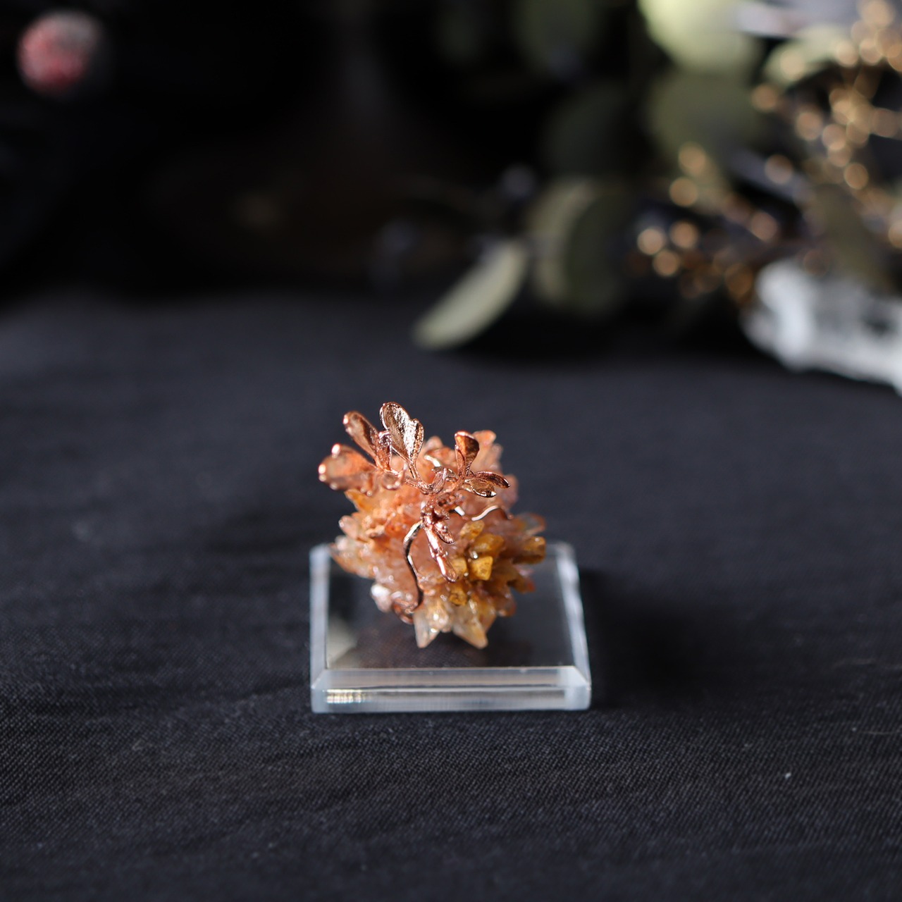 銅化した本物の植物と鉱物を使ったアートオブジェ。