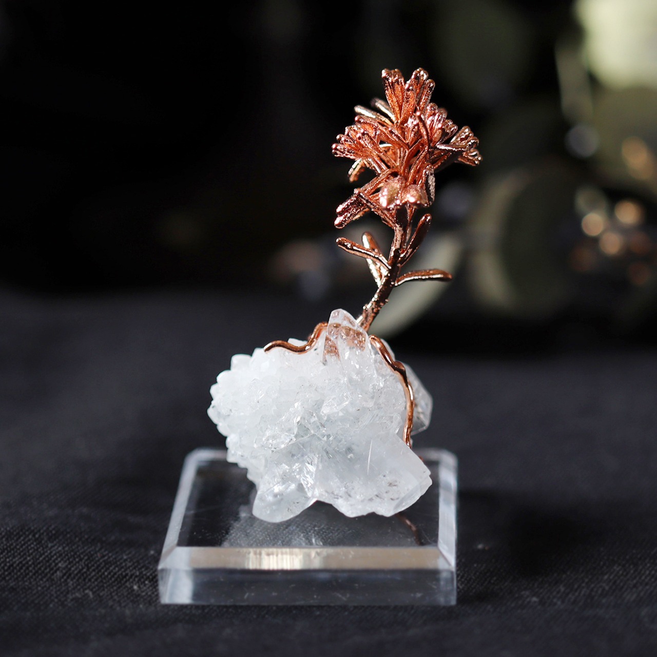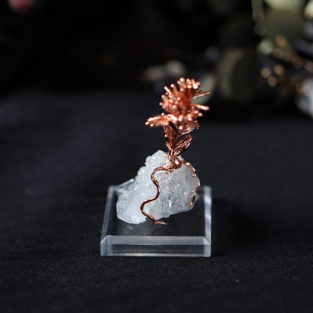 素材:アポフィライト/カルセドニー(インド産/Jalgaon,Maharashtra)・セダム(銅メッキ)