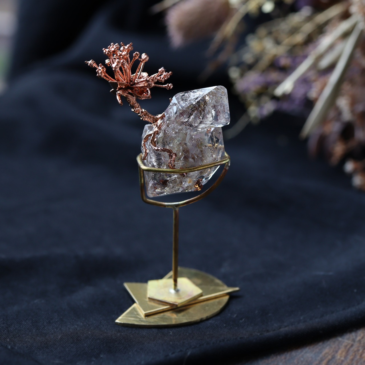 【花石】スタンド/ダイヤモンドクォーツとサンシュユ