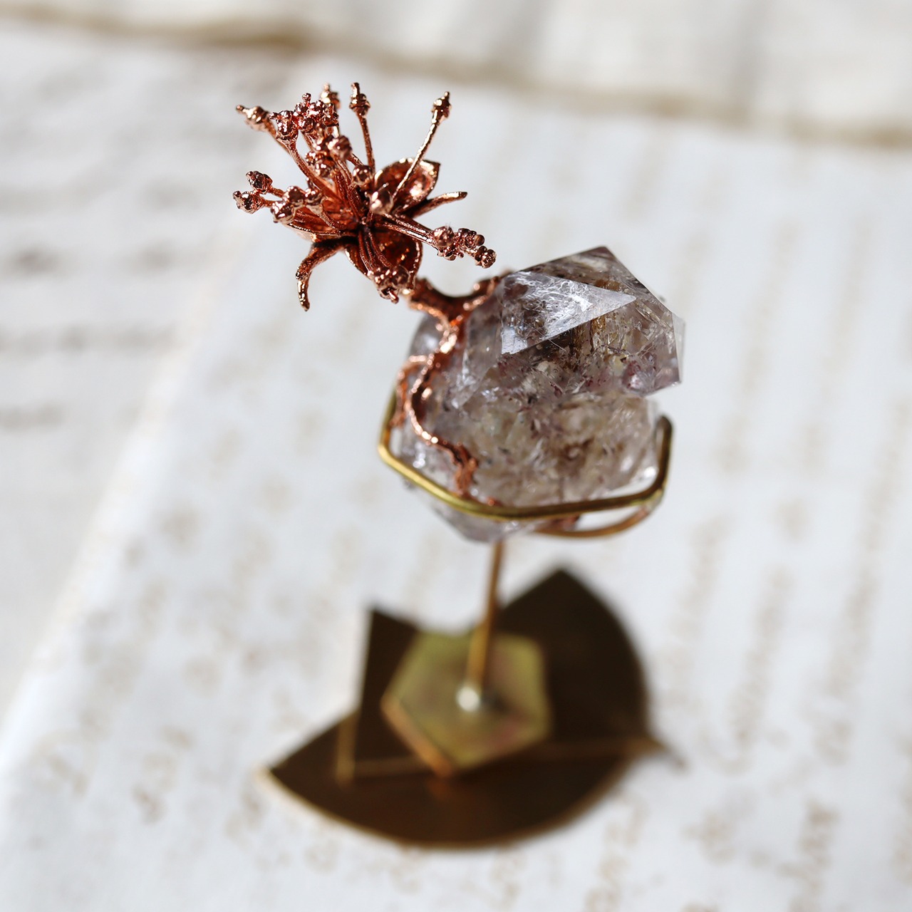 素材:ダイヤモンドクォーツ(パキスタン産)・サンシュユ(銅コーティング)・真鍮