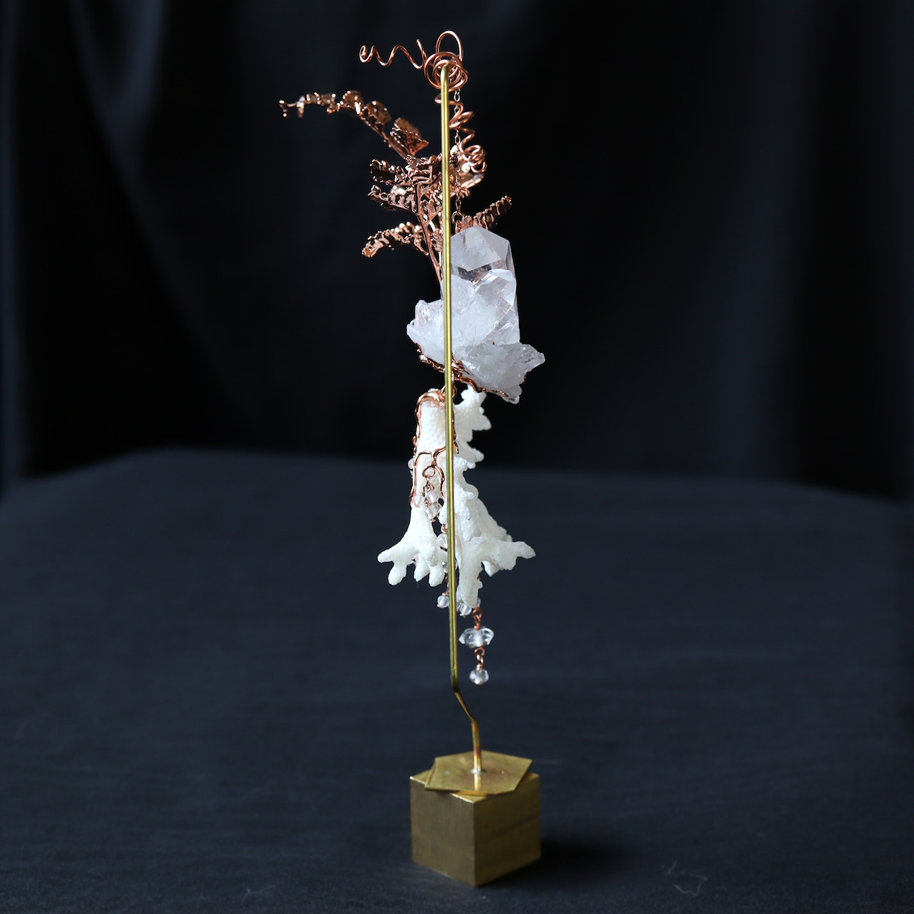 素材:クォーツクラスター(ブラジル産/Tomas Gonzaga,Curvelo,M.,Gerais)・サンゴ・ダバリア(銅コーティング)