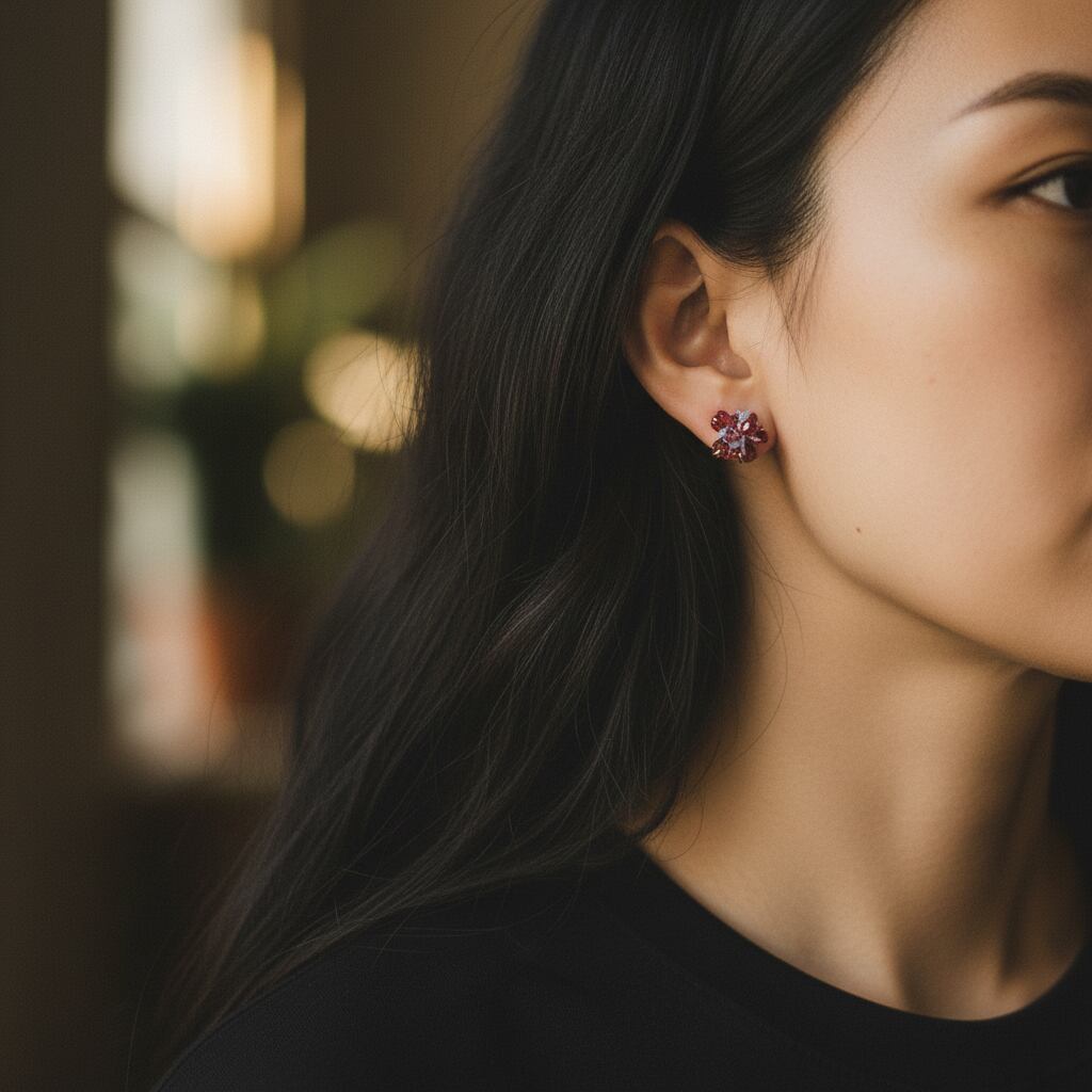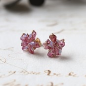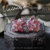 3種類の鉱物の結晶が共生し花開くような、創造上の鉱物「Unionite」のピアス。