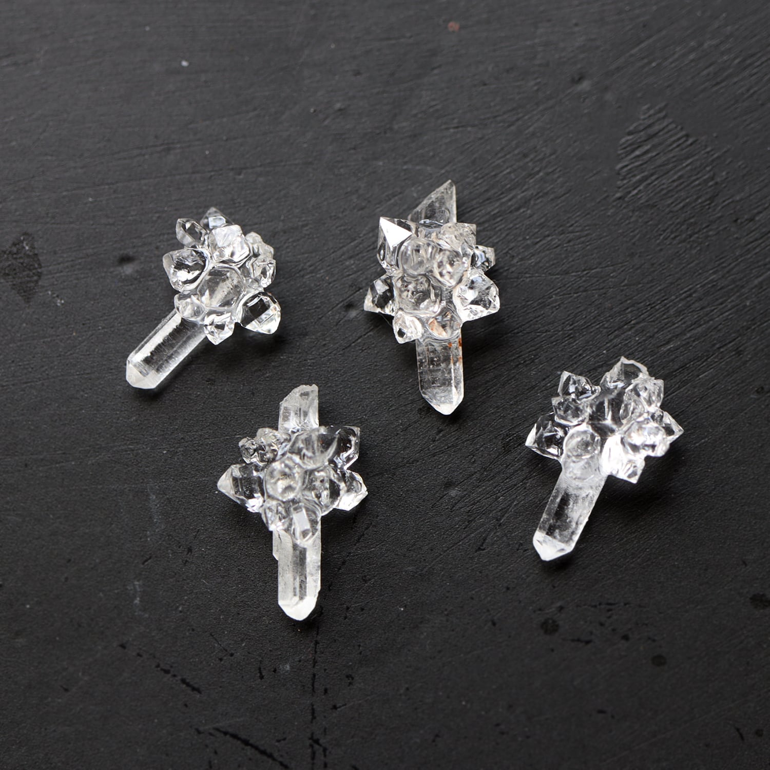 表情の違う二種類の水晶が共生して結晶化した、創造上の鉱物「Unionite」のピアス。