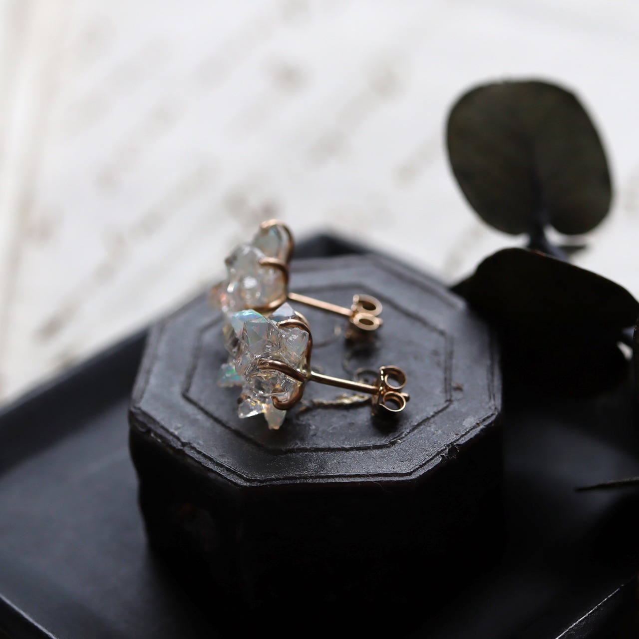 金色の爪で有機的に石を留めることで、光を最大限取り込み耳元できらきらと輝きます。地球が生み出す芸術品のような原石を、ファッションとして楽しめるアイテムです。