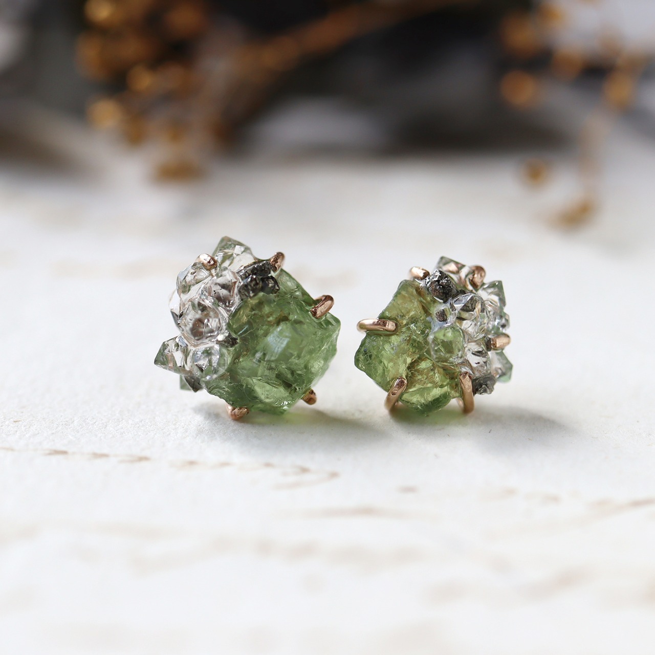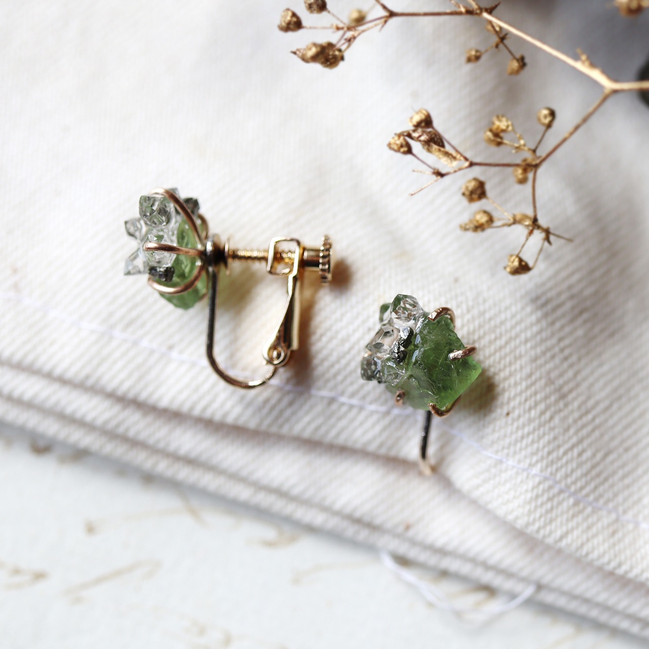 グリーンアパタイトとダイヤモンドクォーツのピアス w1631-Unionite142