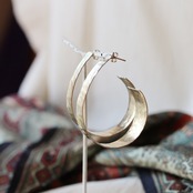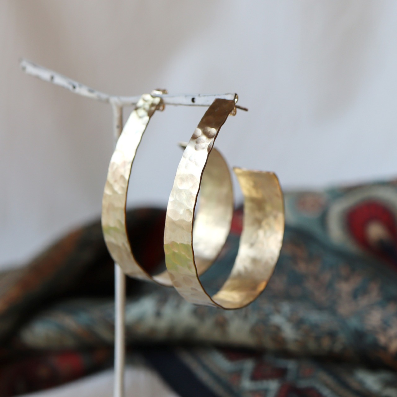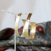 槌目模様の真鍮フープピアス