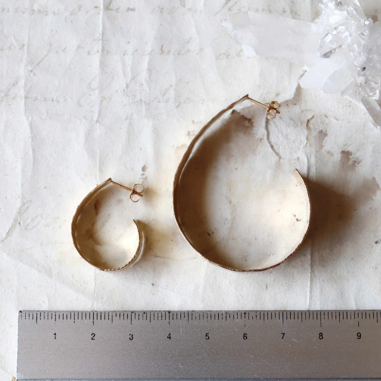真鍮のあたたかい質感をいかした、大振りなフープピアス。