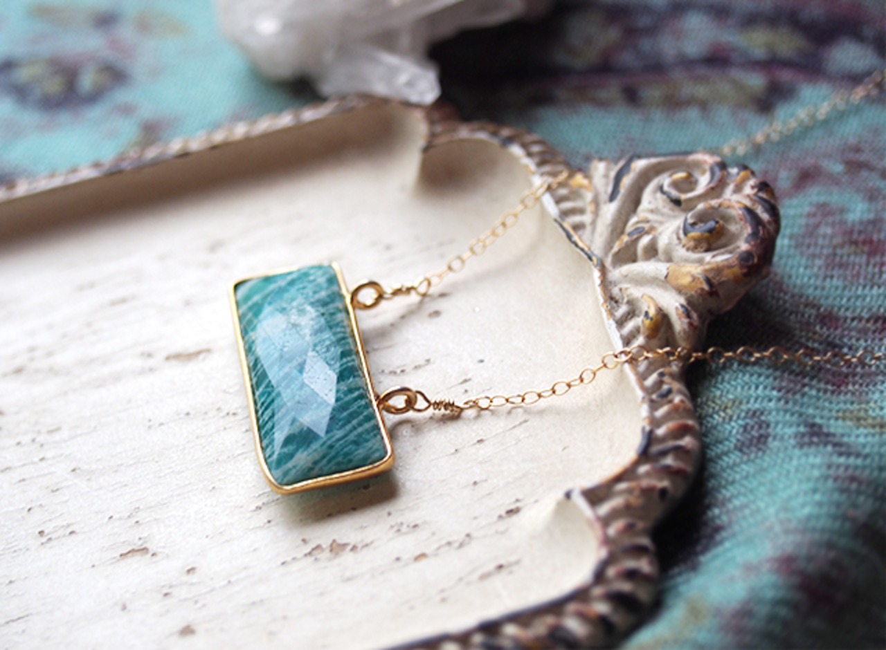 「ブラジルのアマゾン川流域で発見された」という話から名付けられたアマゾナイト。日本ではアマゾン川のイメージから「天河石」という名で呼ばれています。