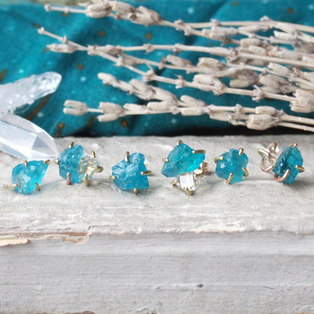原石のアパタイトとダイヤモンドクォーツのピアス