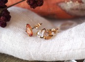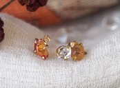 原石のオレンジサファイアとダイヤモンドクォーツのピアス