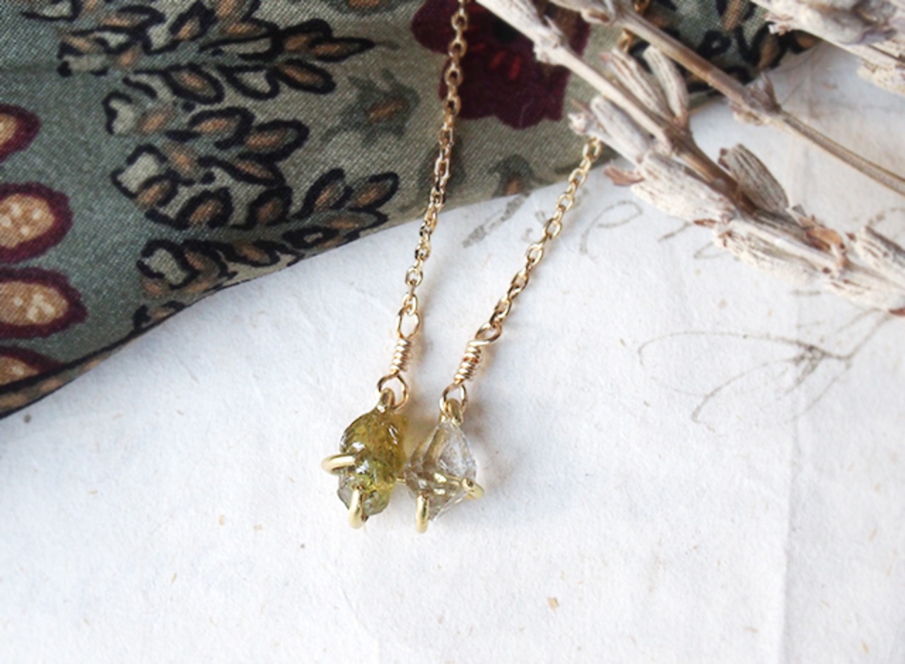 原石のグリーンガーネットとダイヤモンドクォーツのネックス
