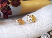 原石のイエローサファイアとダイヤモンドクォーツのピアス