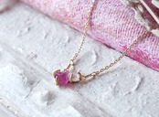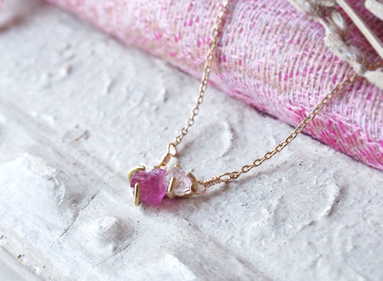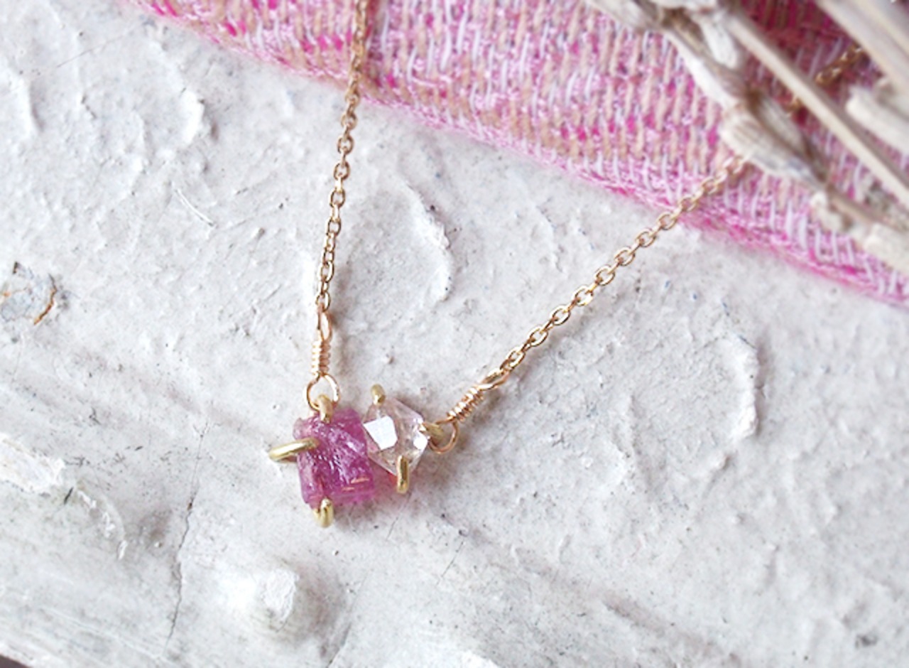 原石のピンクトルマリンとダイヤモンドクォーツのネックレス