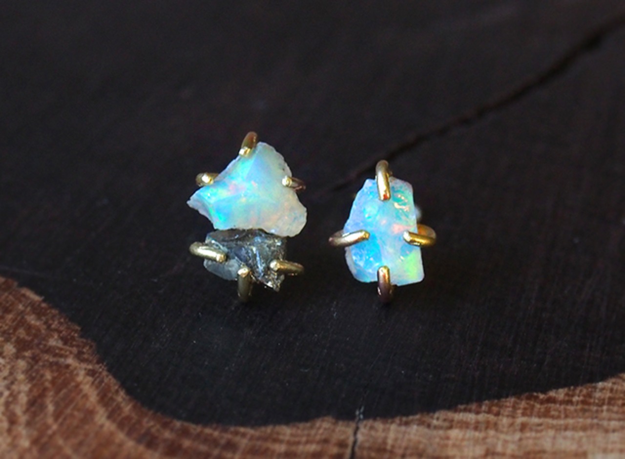 それぞれの天然石の原石らしい質感を活かした、アシンメトリーでラフな雰囲気のピアスです。