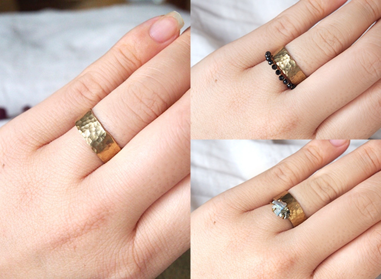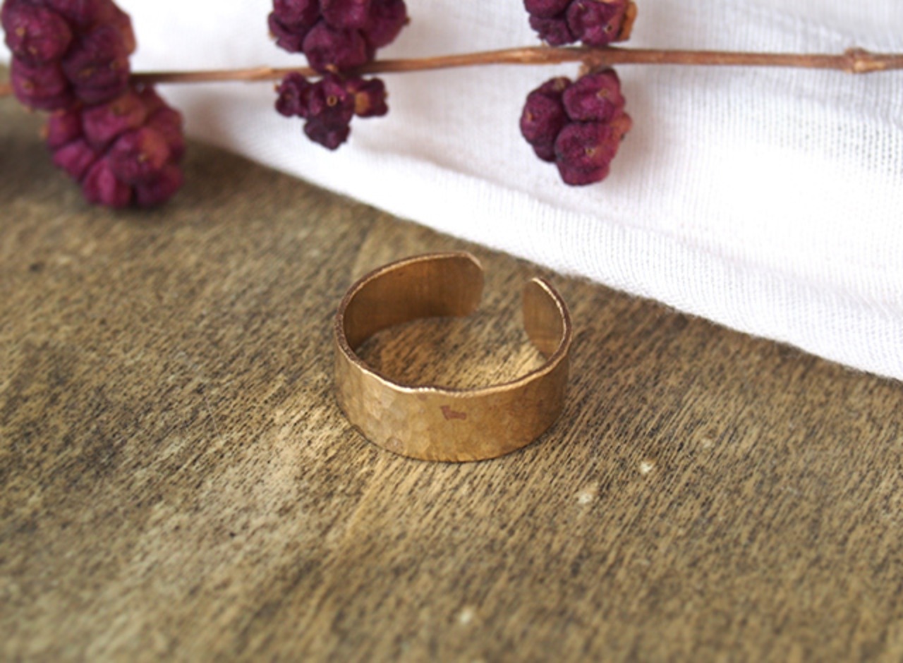 真鍮と槌目のあたたかい質感を活かした、幅広のリングです。