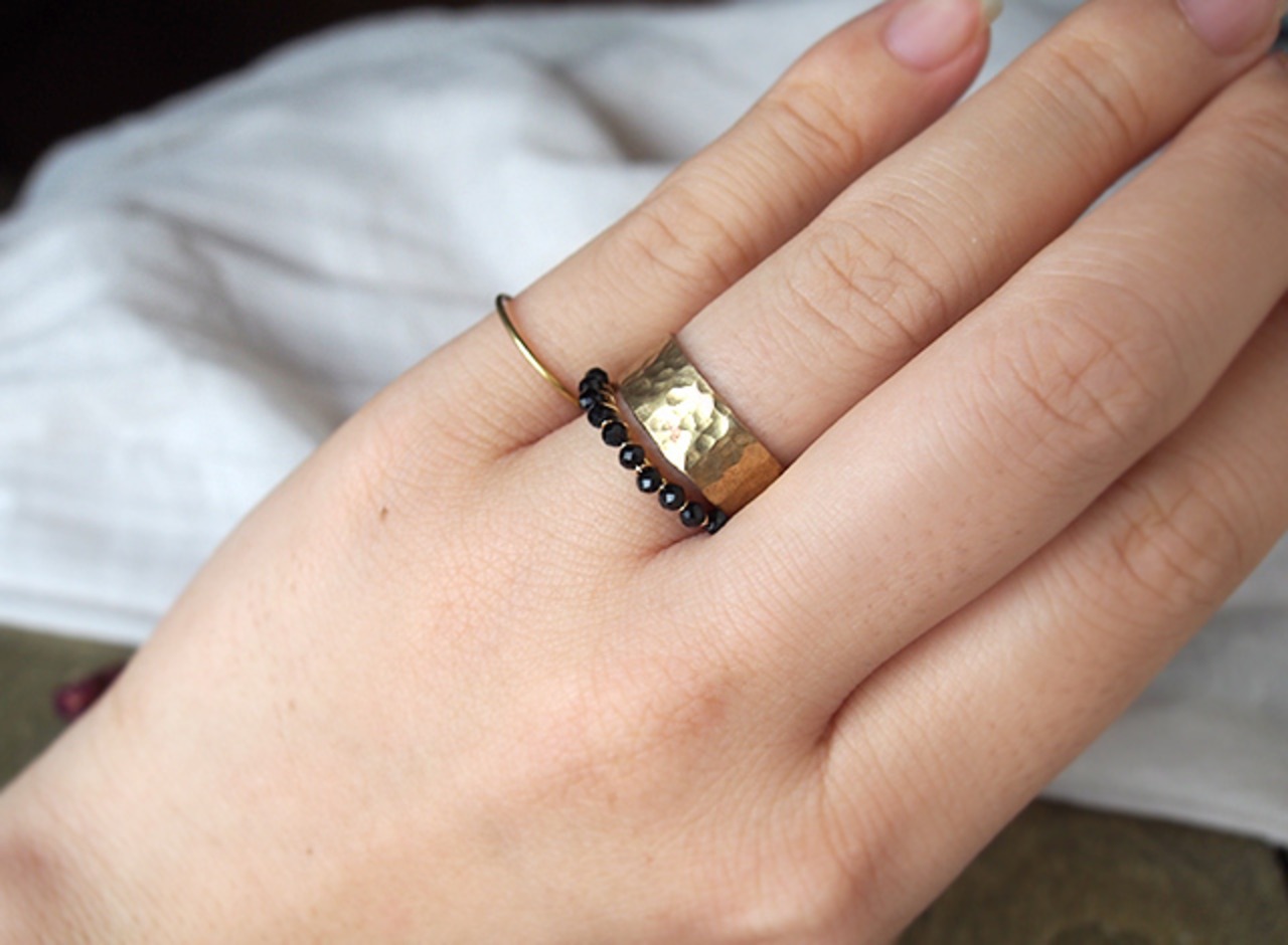 重ね着けリング ブラックスピネル・真鍮の槌目リング w359