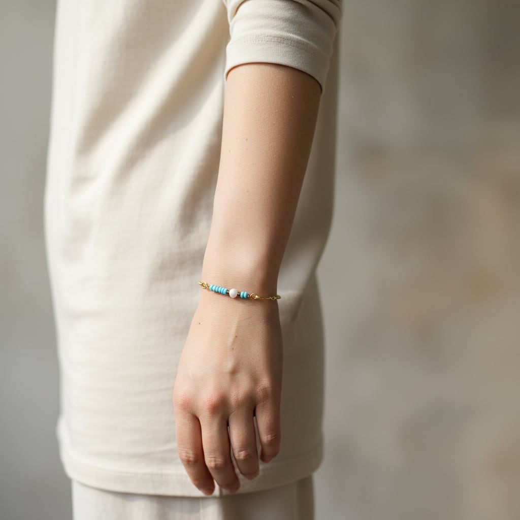 爽やかなブルーが眩しいターコイズと、自然な丸みが上品なパール。
