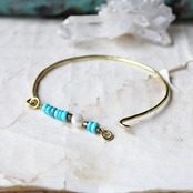 マリンカラーの天然石を、あたたかいゴールド色の真鍮と合わせ、シンプルなバングルにしました。