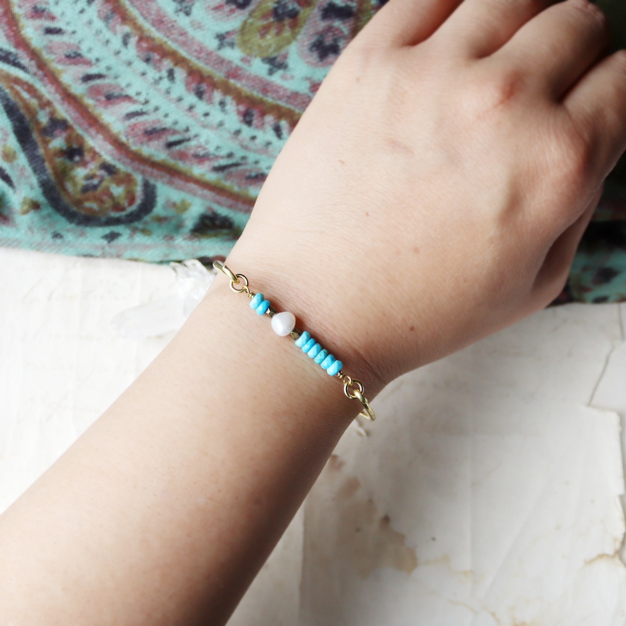 素材:マグネサイトターコイズ・パール・真鍮