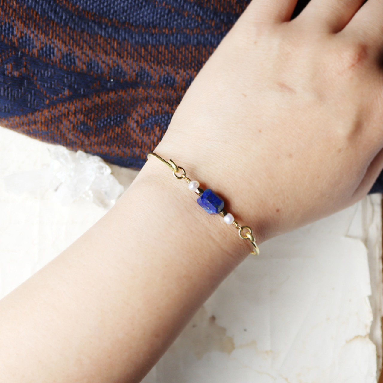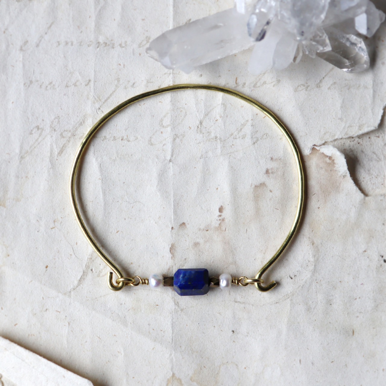 ラピスラズリとパールの真鍮バングル