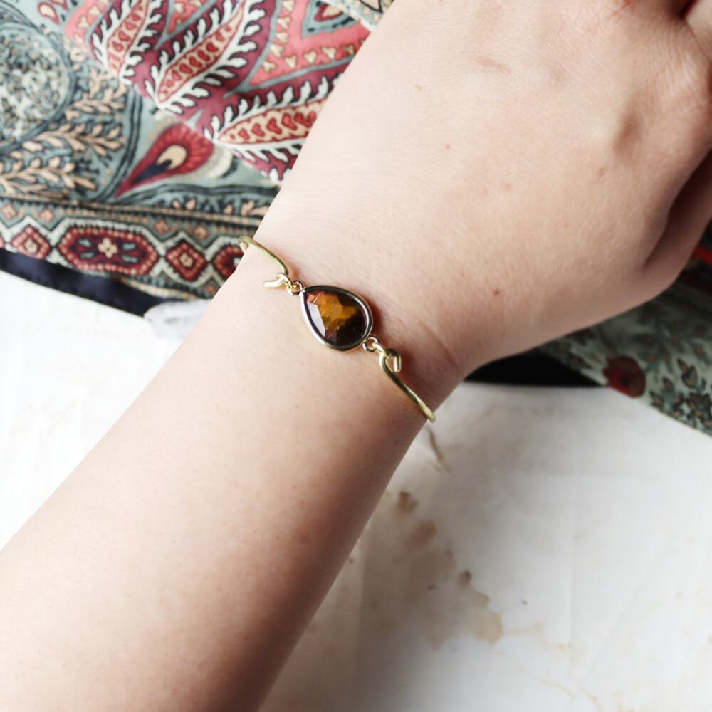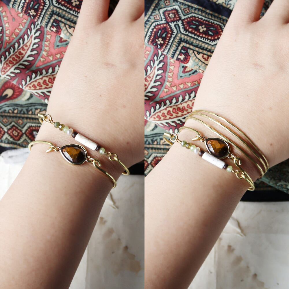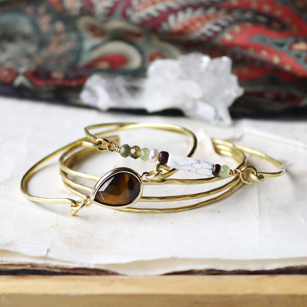 あたたかいゴールド色の真鍮と合わせ、シンプルなバングルにしました。