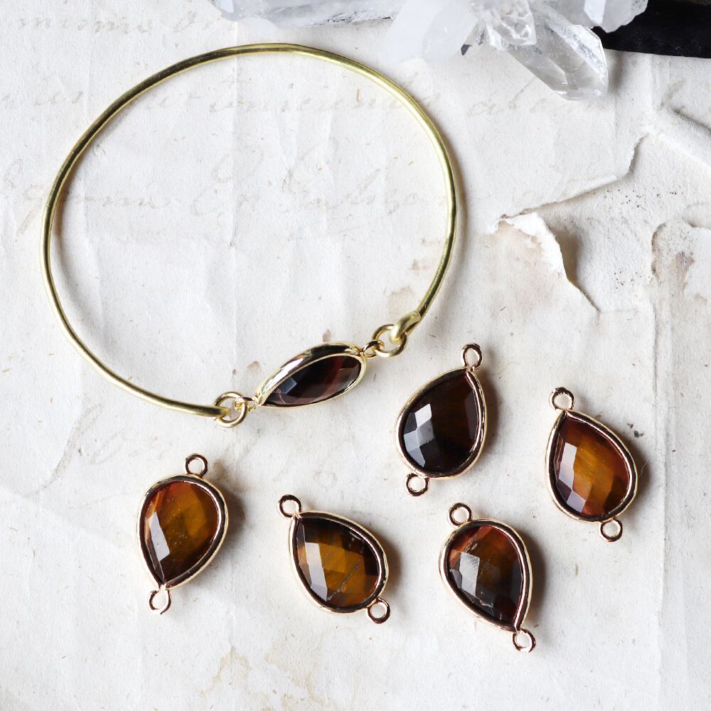 クロシドライトという鉱物が長い年月をかけて石英に置き換わったもので、茶色や金色の色味は成分が酸化したために見られる色味です。酸化せずクロシドライトの色味が残ったものはブルータイガーアイ、タイガーアイが更に酸化したものはレッドタイガーアイなど、様々な色味を持ちます。