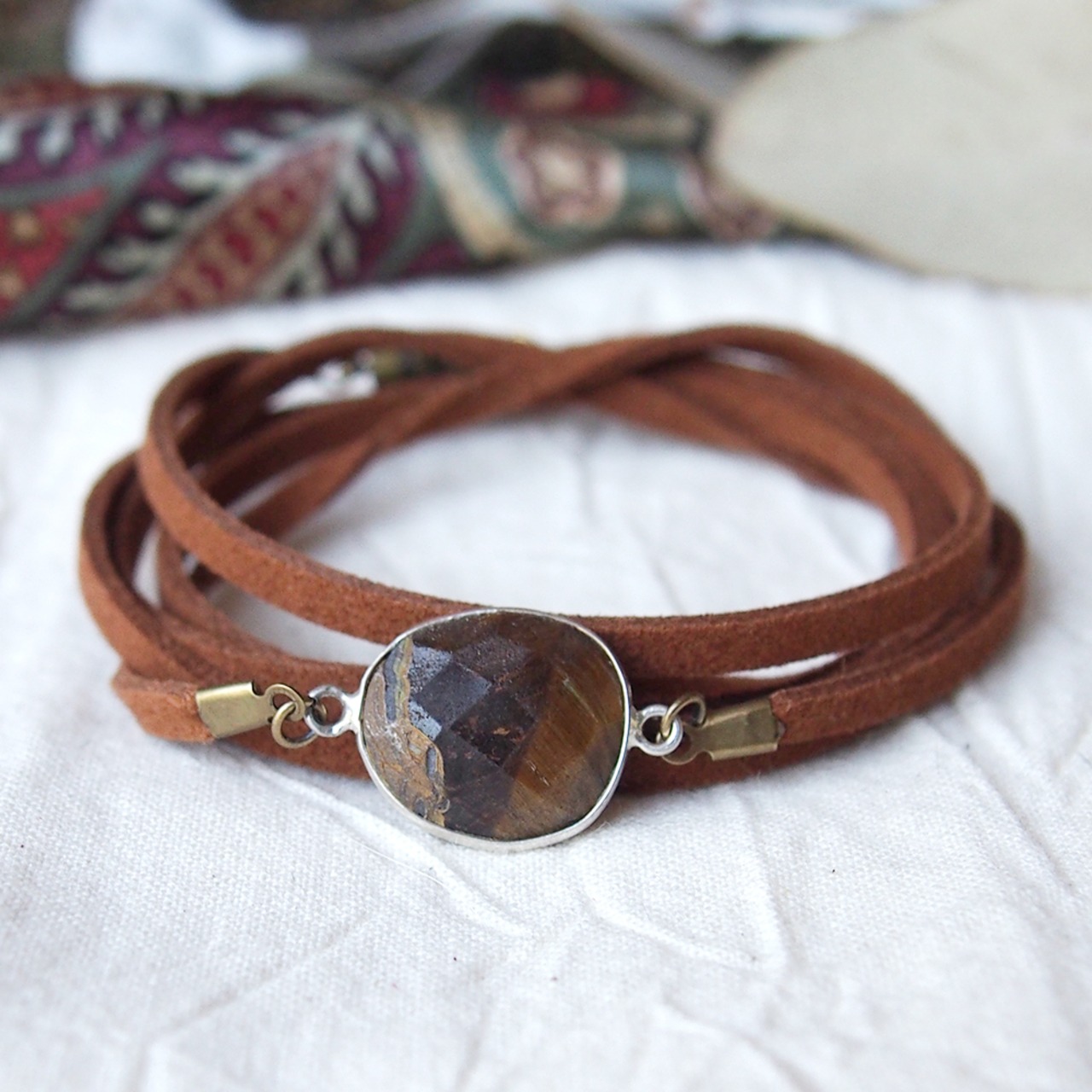 スウェード調のブレスは全10色。マグネット式金具で着脱簡単です。
