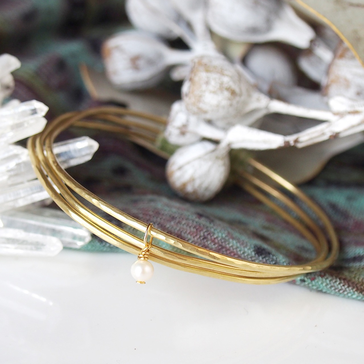 重ね着けブレス-タイガーアイ・パール・真鍮バングル w640