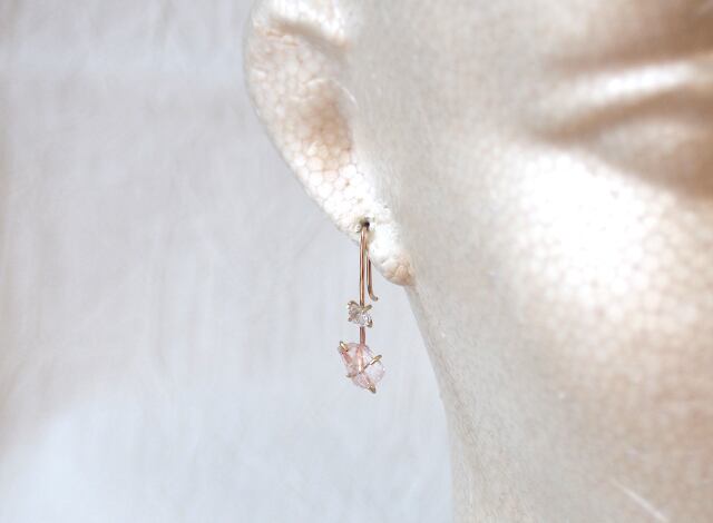 素材:モルガナイト(ナイジェリア産)・ダイヤモンドクォーツ(パキスタン産)・K14ゴールドフィルド(ピアス針)・真鍮