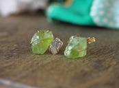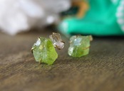原石のペリドットとダイヤモンドクォーツのピアス