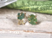 原石のグリーントルマリンとダイヤモンドクォーツのピアス