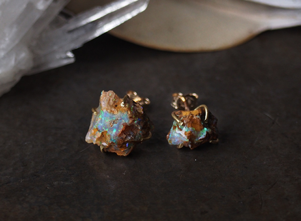 原石のボルダーオパールのピアス