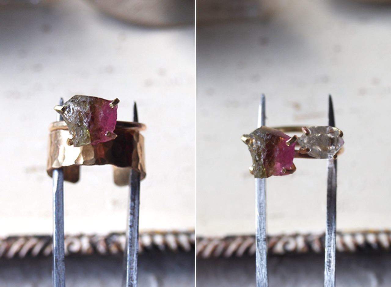 あたたかいゴールド色の真鍮で、原石をラフに留めシンプルなリングにしました。