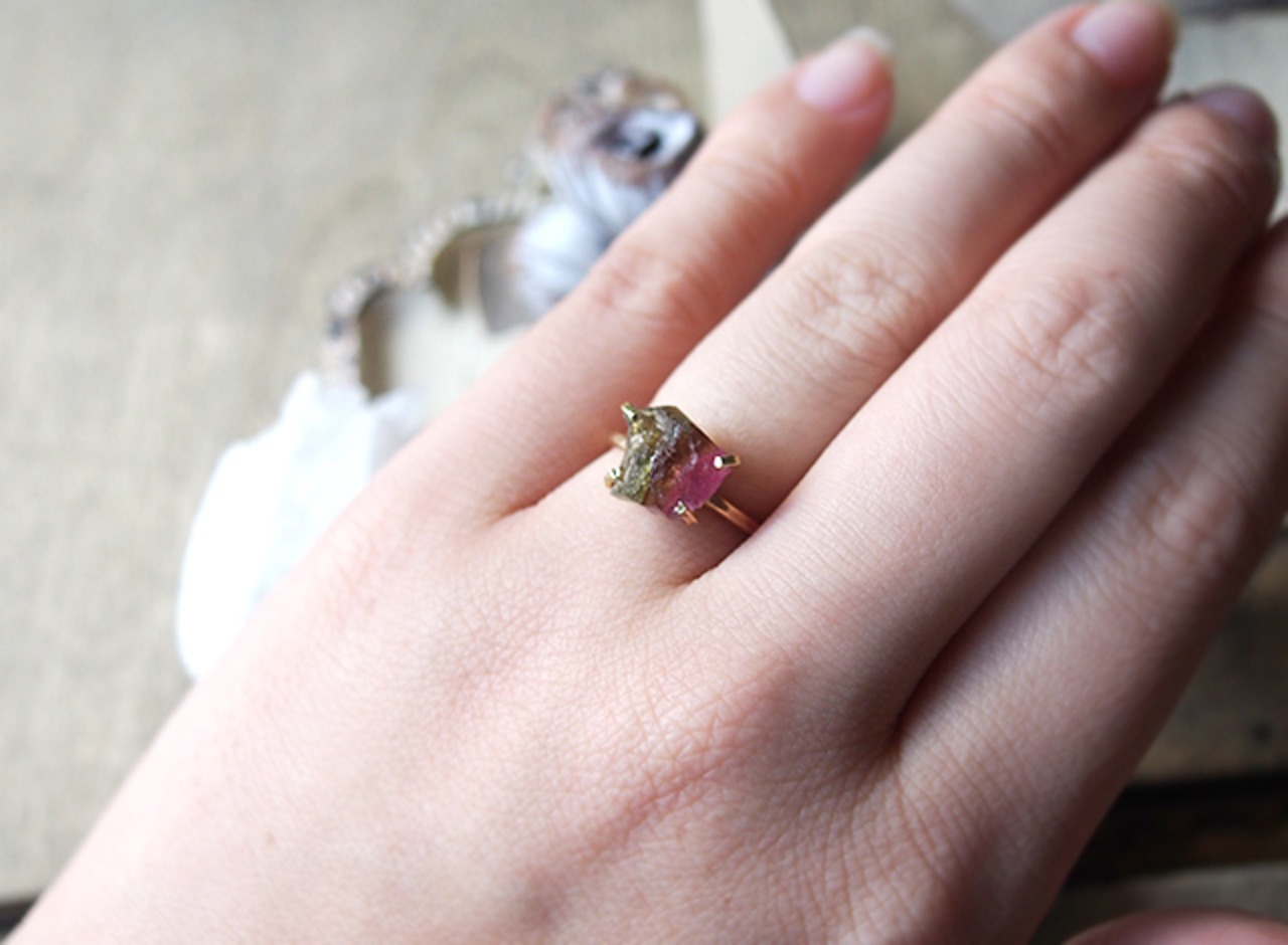 [一点物]原石のウォーターメロントルマリンのリング w759