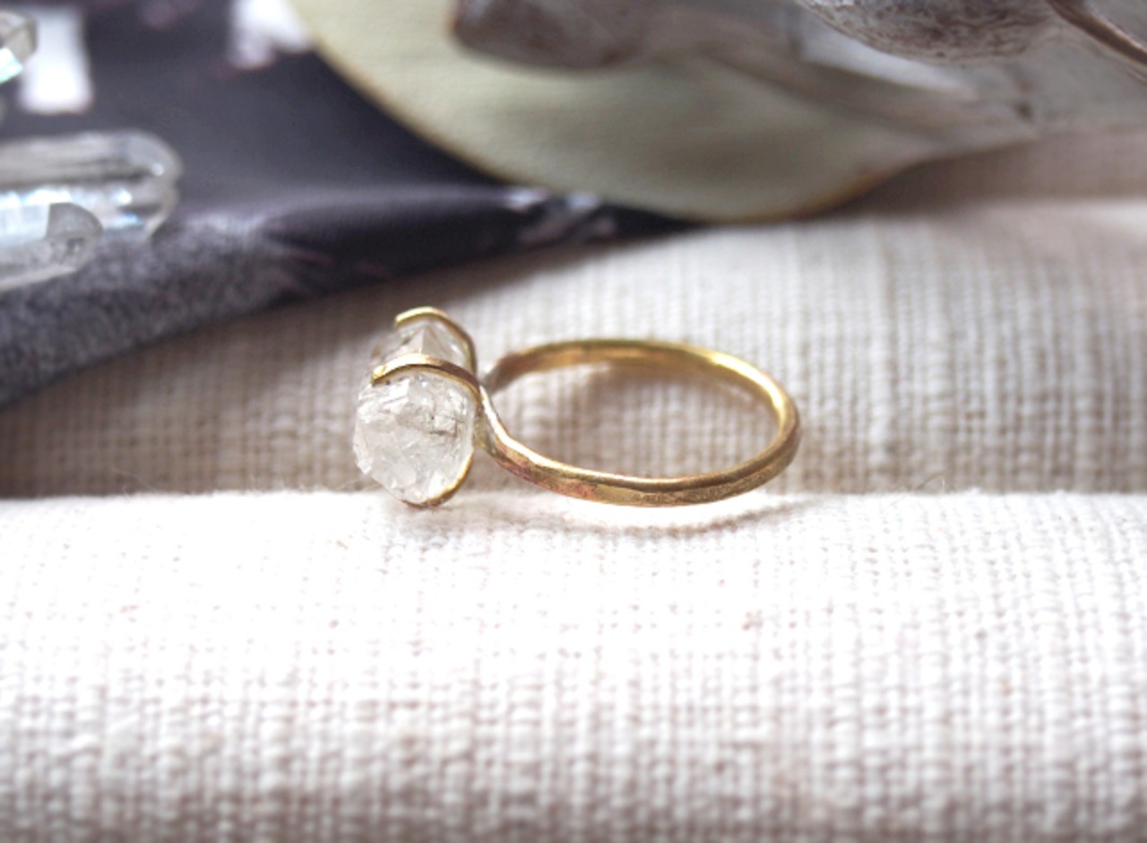 水晶が育つ鉛筆型の結晶をそのままに留めた、個性的なリング。
