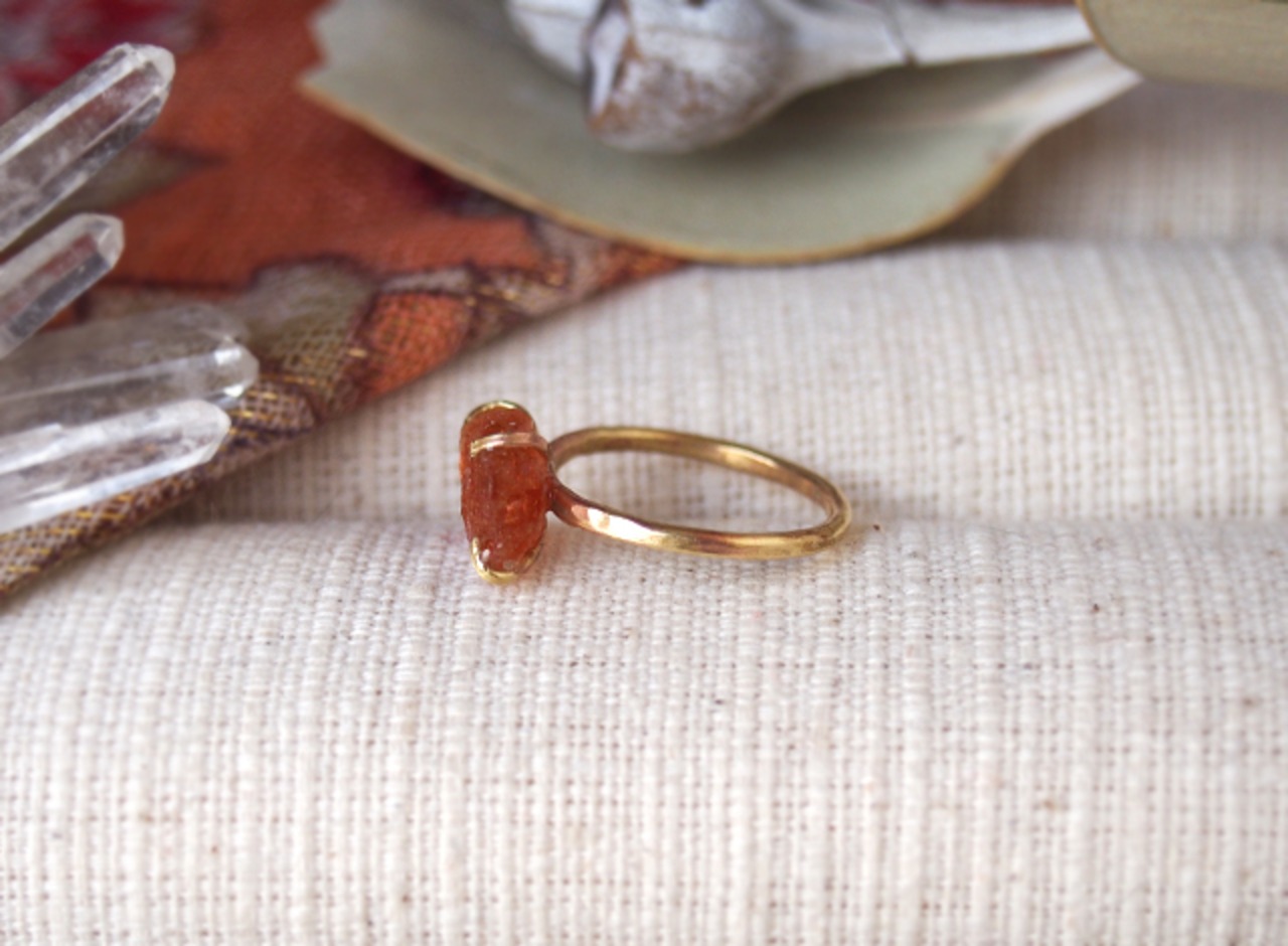 4本の爪でラフに石を留め、味わいのあるナチュラルなリングにしました。