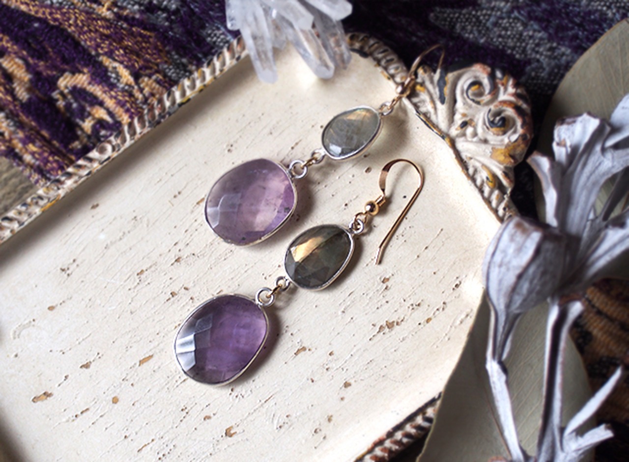 素材:ラブラドライト・アメジスト・シルバー(石枠)・K14ゴールドフィルド(ピアス金具)