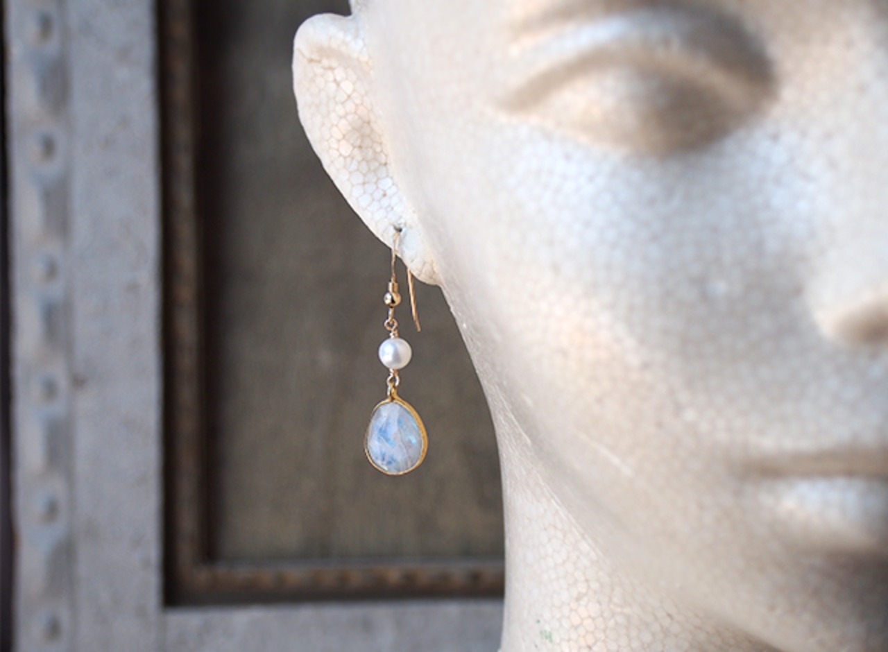 パールとムーンストーンはどちらも6月の誕生石。プレゼントにもおすすめのアイテムです。