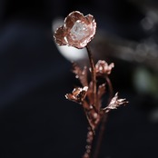 植物や鉱物など、金属ではないものの表面に電気メッキをかける技術。儚く枯れてしまう植物を金属に変えることでその時間と美しさを留めることができる、錬金術のような技法です。金属の層を厚くすることにより、強度も保たれます。