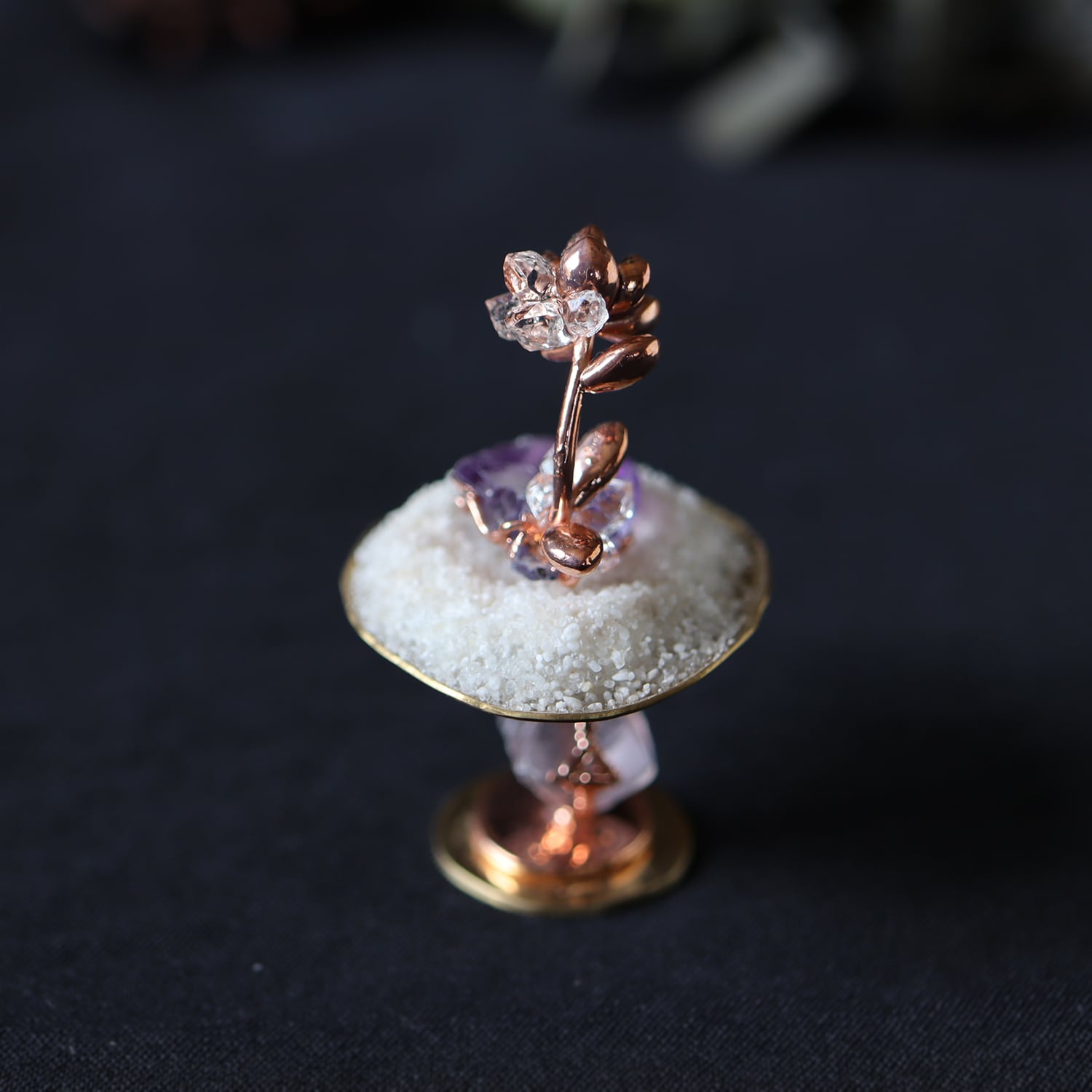 銅化した本物の植物と鉱物を使ったアートオブジェ。