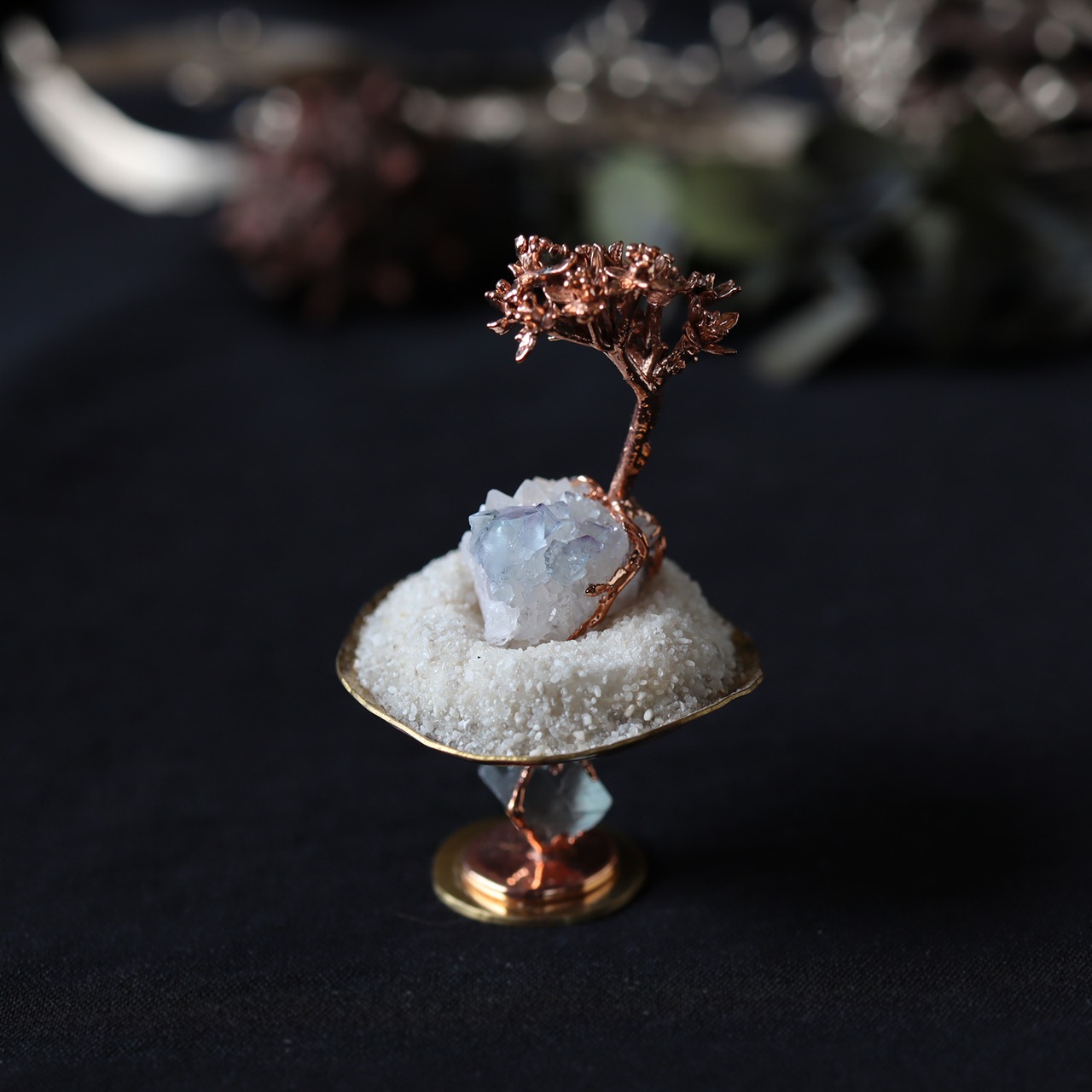 銅化した本物の植物と鉱物を使ったアートオブジェ。