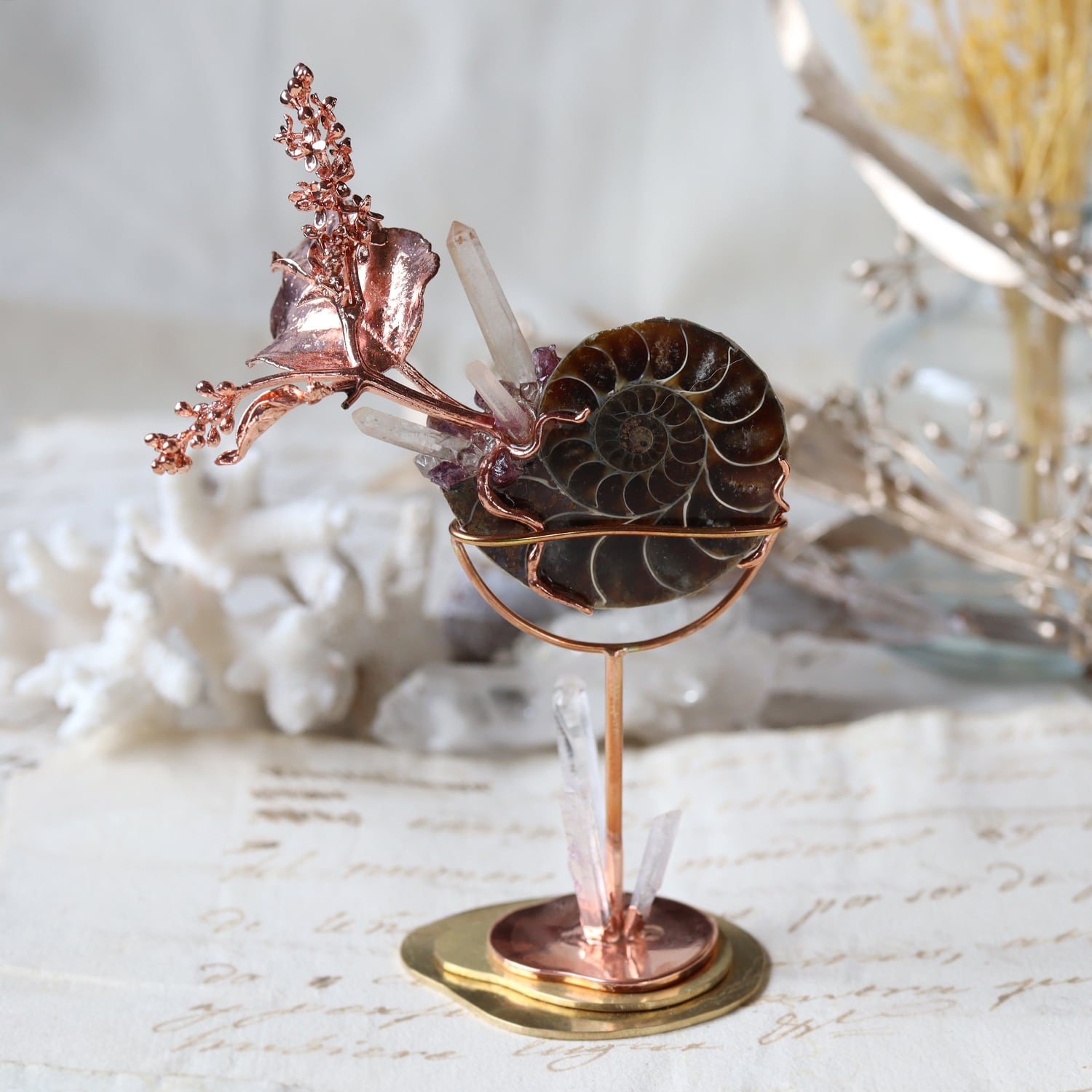 銅化した本物の植物と鉱物を使ったアートオブジェ。
