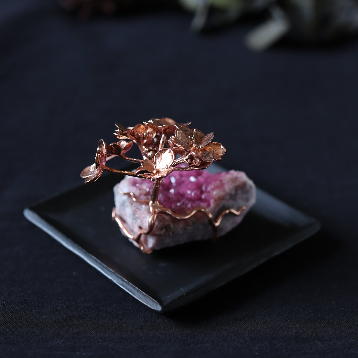 素材:コバルトカルサイト(コンゴ民主共和国産/Musonoi Mine.,Kolwezi,Katanga)・アジサイ(アナベル/銅メッキ)