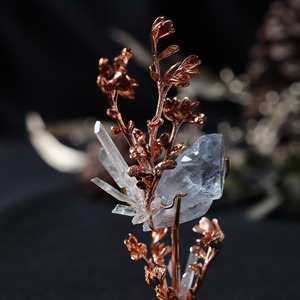 素材:セレスタイト(マダガスカル産)・クォーツ(マダガスカル産)・スベリヒユ(銅メッキ)・真鍮